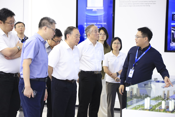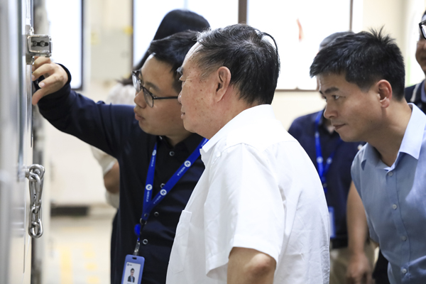 隨后,調(diào)研組一行深入星云檢測實驗室,系統(tǒng)性地觀摩、了解了從電芯到電池包、從硬件到軟件的全鏈條檢測工序,并詳細察看了星云股份自主研發(fā)的高精度充放電測試設(shè)備模擬不同工況、不同環(huán)境條件下,精準評估電池的容量、電壓、電流、內(nèi)阻及循環(huán)壽命等核心數(shù)據(jù)的具體過程。周濟院士在考察中駐足觀察設(shè)備工作,深入詢問技術(shù)細節(jié),對星云股份在鋰電池檢測高端裝備領(lǐng)域取得的創(chuàng)新成果表示充分肯定。他指出,當前全球制造業(yè)正加速向數(shù)字化、網(wǎng)絡(luò)化、智能化邁進,星云股份作為國內(nèi)鋰電池檢測行業(yè)的領(lǐng)軍企業(yè),應(yīng)進一步強化自主創(chuàng)新能力,深化人工智能、工業(yè)互聯(lián)網(wǎng)等技術(shù)與行業(yè)的融合,推動中國制造邁向新高度。